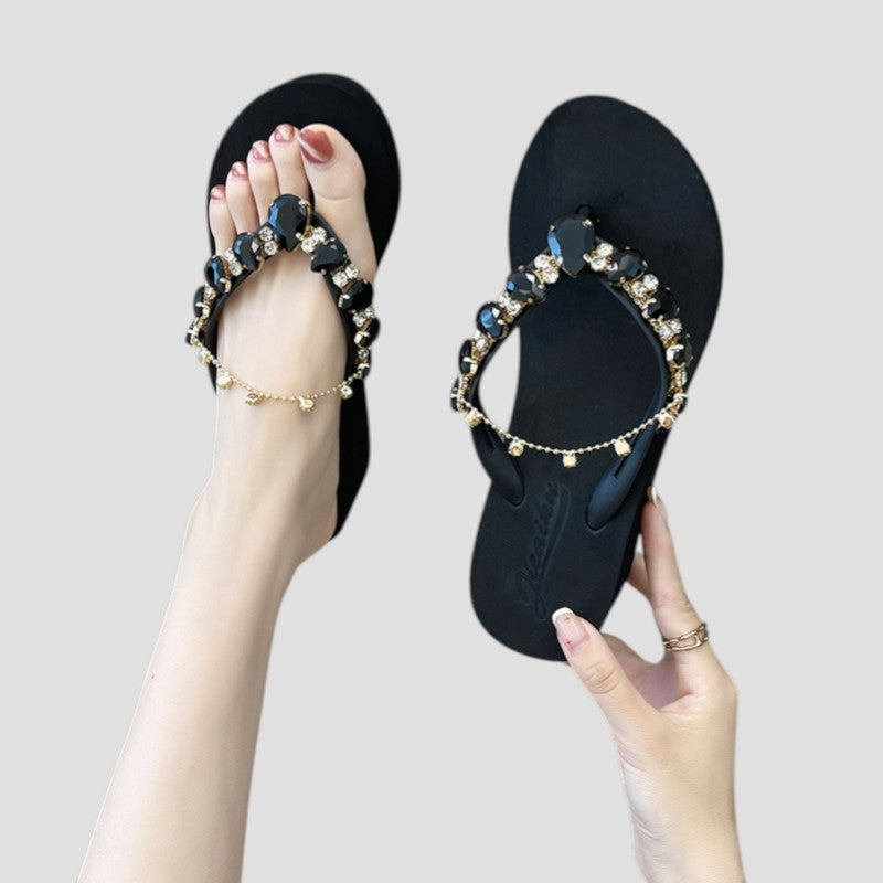 Tongs à Semelle Épaisse Et Chaîne En Strass Pour Femmes