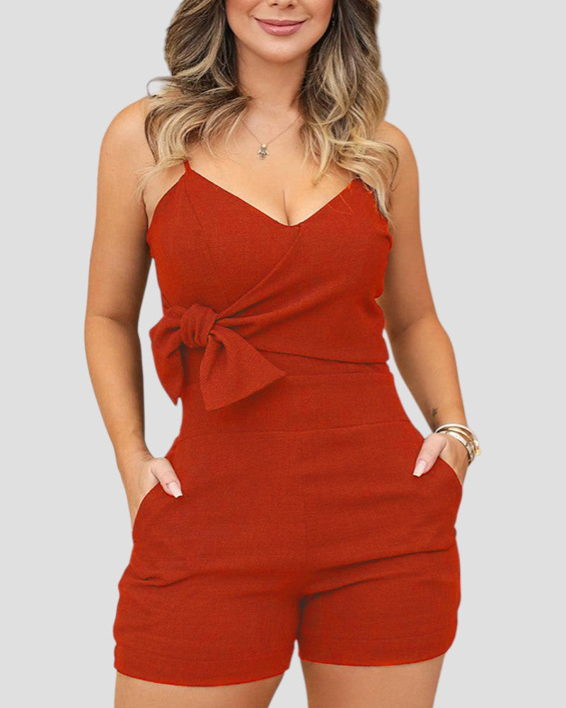 Combinaison Nœud Papillon De Couleur Unie Pour Femme Printemps-été